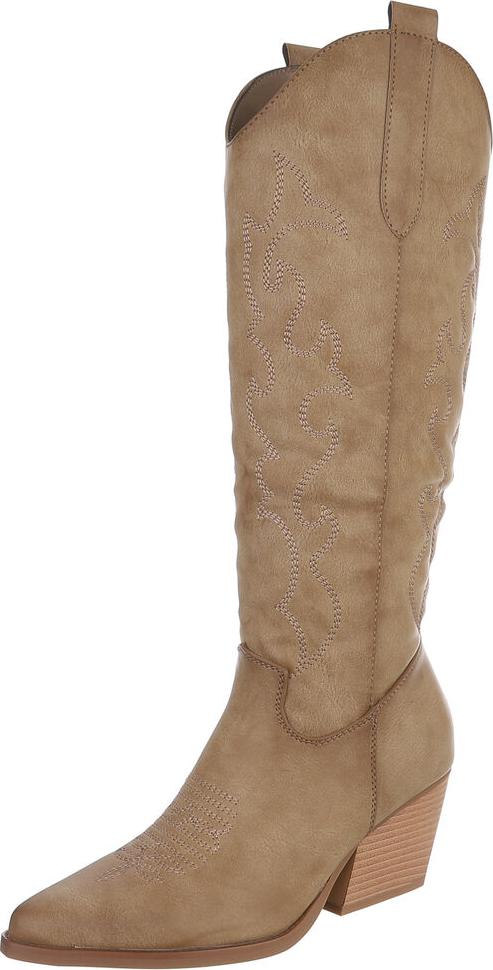 Ital-Design Elegante Stiefeletten mit hohem Absatz für Damen Westernstiefel (90153158) Blockabsatz Stiefel in Hellbraun (braun)