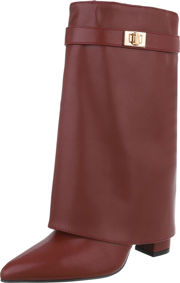 Ital-Design Elegante Stiefeletten mit umgeschlagenem Schaft für Damen High-Heel-Stiefel (90169655) Blockabsatz Stiefel in Weinrot (rot)