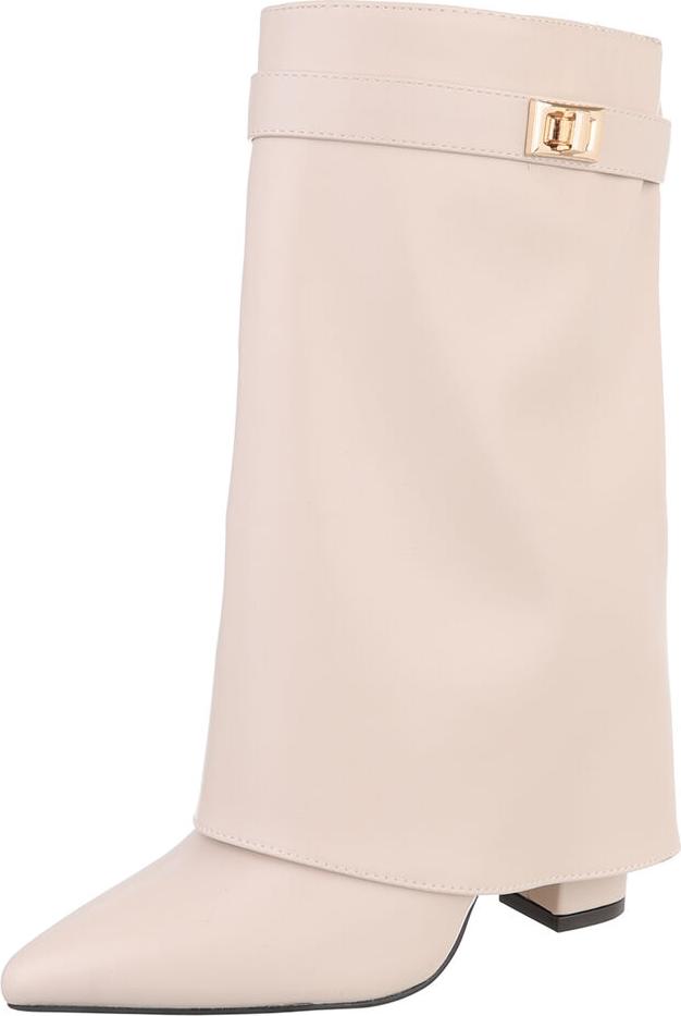 Ital-Design Elegante Stiefeletten mit umgeschlagenem Schaft für Damen High-Heel-Stiefel (90169674) Blockabsatz Stiefel in Beige (beige)