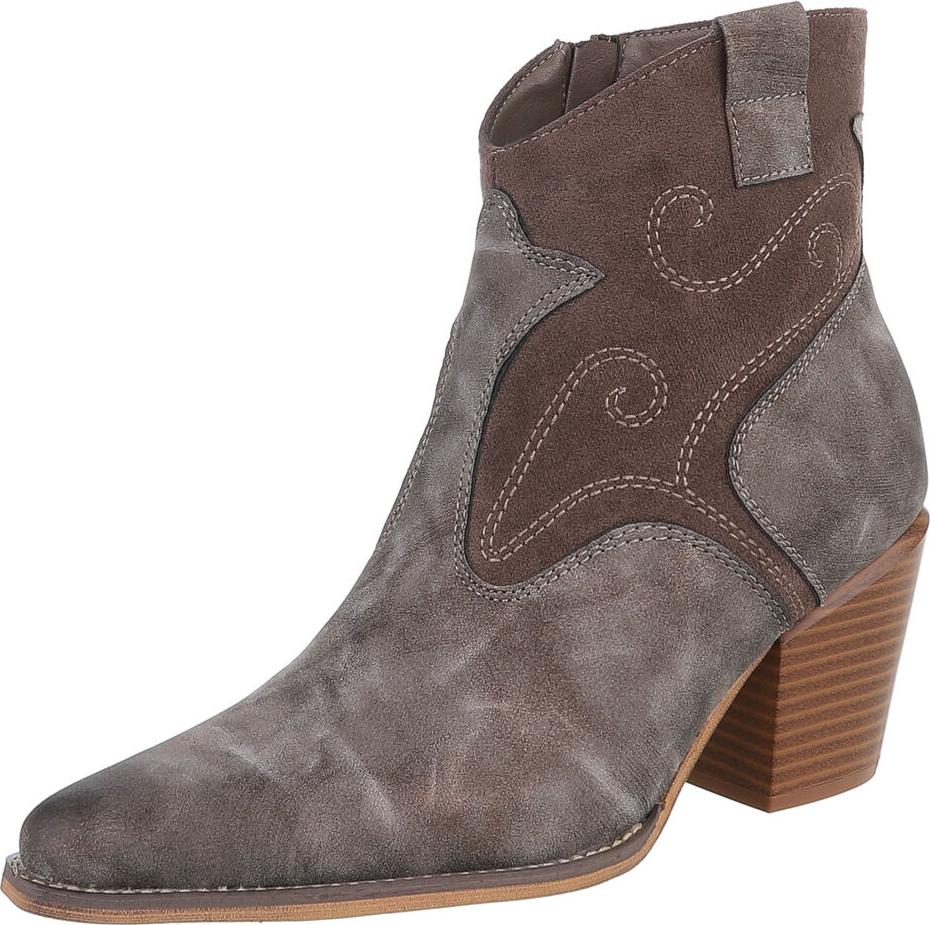 Ital-Design Eleganter Ankle Boot mit geschwungenen Details für Damen Westernstiefelette (90110080) Blockabsatz Stiefeletten in Braun (braun)