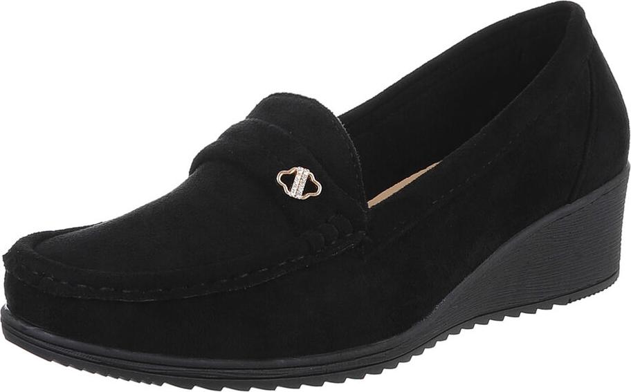 Ital-Design Eleganter Damen Slipper mit Wedge-Sohle und Details Slipper (90482683) Keilabsatz/Wedge Mokassins in Schwarz (schwarz)