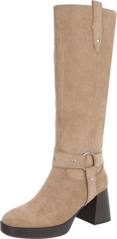 Ital-Design Eleganter Damen-Stiefel mit Blockabsatz und Kontrastnähten High-Heel-Stiefel (90110105) Blockabsatz Stiefel in Hellbraun (braun)