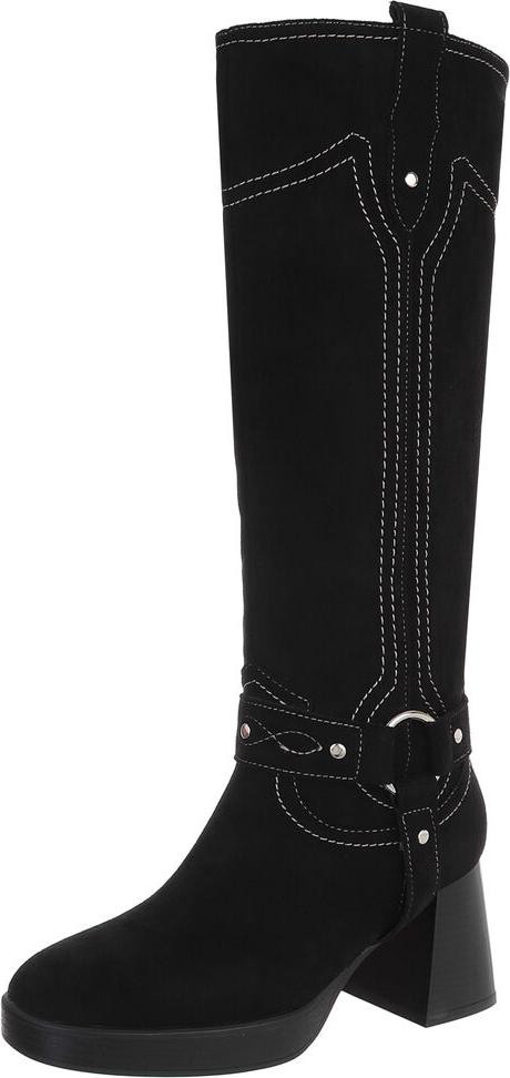 Ital-Design Eleganter Damen-Stiefel mit Blockabsatz und Kontrastnähten High-Heel-Stiefel (90110117) Blockabsatz Stiefel in Schwarz (schwarz)