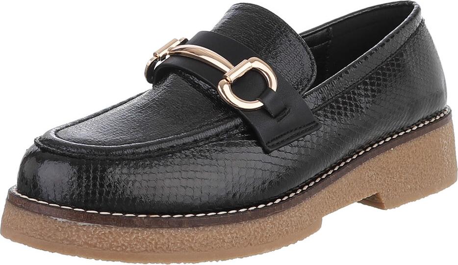 Ital-Design Eleganter Loafer mit Schnalle für Damen – Komfort & Stil Slipper (90169335) Blockabsatz Mokassins in Schwarz (schwarz)