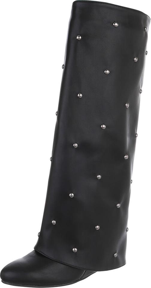 Ital-Design Glamouröse Damenstiefel mit Perlendetails für besondere Anlässe Keilstiefel (90458143) Keilabsatz/Wedge Stiefel in Schwarz (schwarz)