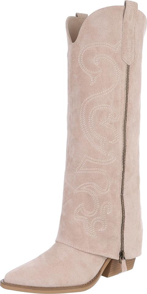 Ital-Design Hochwertige Damen-Stiefel mit Blockabsatz und Details Westernstiefel (90471257) Blockabsatz Stiefel in Beige (beige/braun)
