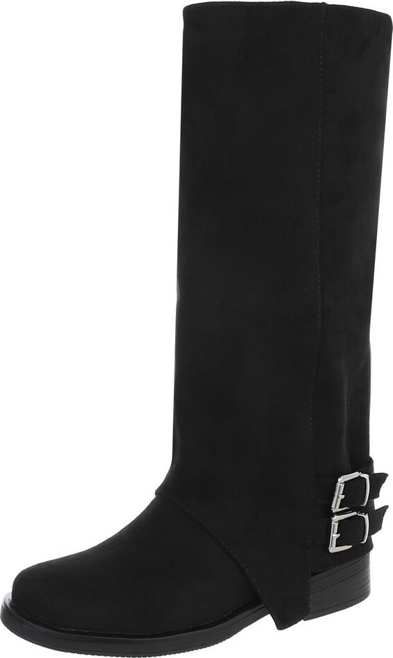 Ital-Design Hochwertige Damenstiefel mit Schnallen für Freizeit und Alltag Westernstiefel (90169566) Blockabsatz Flache Stiefel in Schwarz (schwarz)