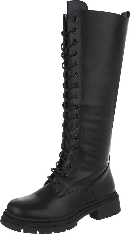 Ital-Design Langer Schnürstiefel für Damen – Komfortabel und stilvoll Plateaustiefel (90109837) Blockabsatz Stiefel in Schwarz (schwarz)