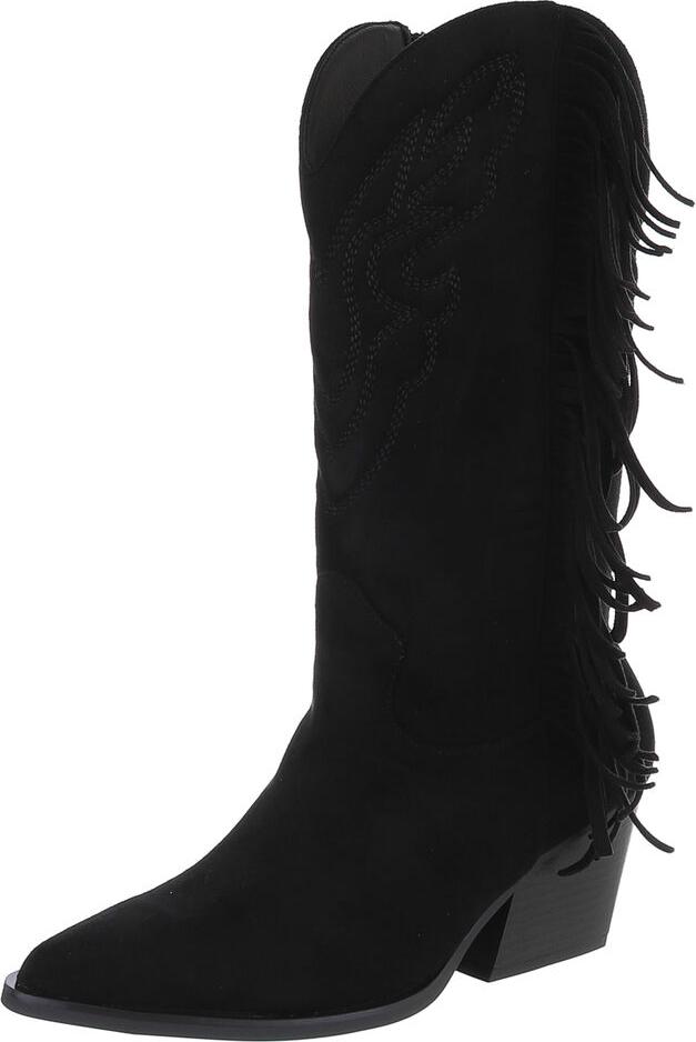 Ital-Design Moderne Damen-Stiefel mit Fransen für Freizeit und Events Westernstiefel (90458161) Blockabsatz Stiefel in Schwarz (schwarz)