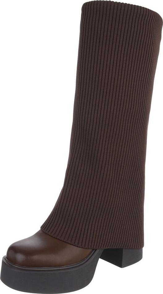Ital-Design Moderne Stiefel mit Strickdesign und bequemer Passform Plateaustiefel (90482624) Blockabsatz Stiefel in Braun (braun)