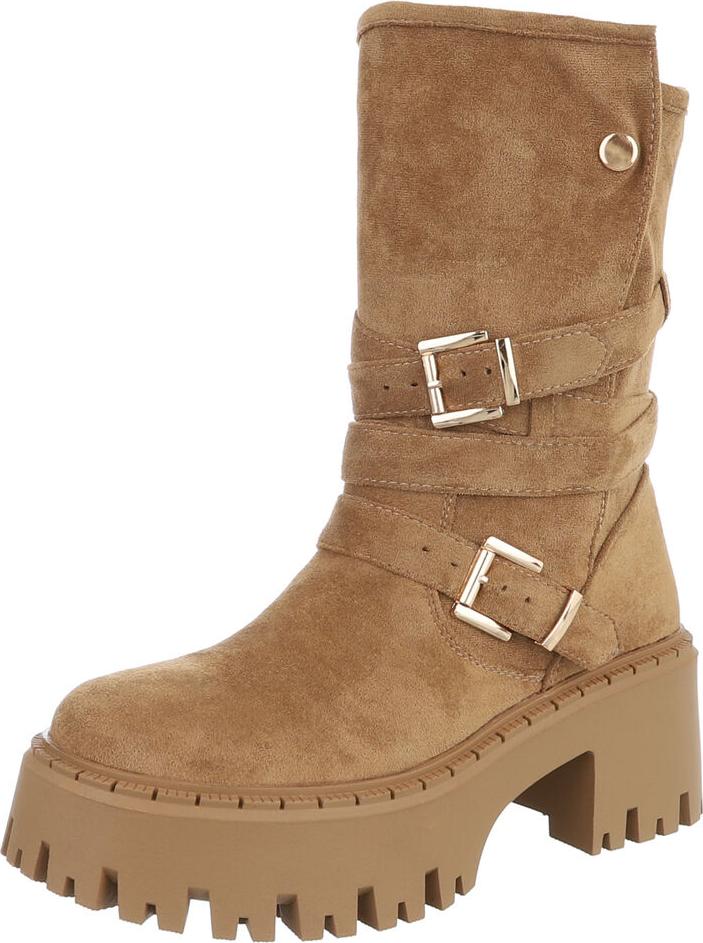 Ital-Design Modische Damen Stiefeletten mit Schnallen und Profilsohle Plateaustiefel (90169579) Blockabsatz Stiefel in Hellblau (braun)