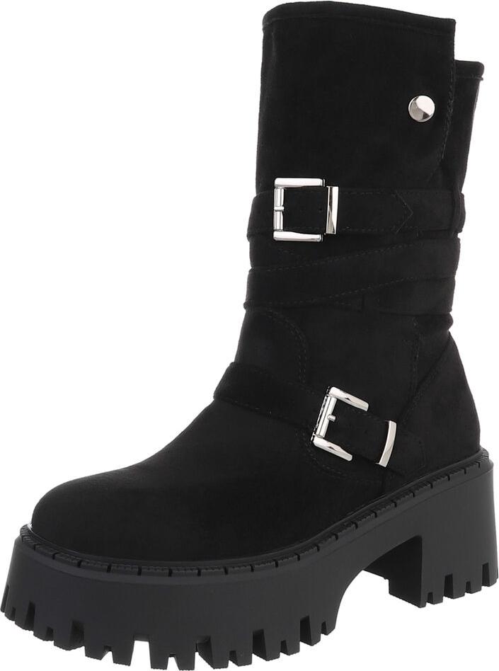 Ital-Design Modische Damen Stiefeletten mit Schnallen und Profilsohle Plateaustiefel (90169585) Blockabsatz Stiefel in Schwarz (schwarz)