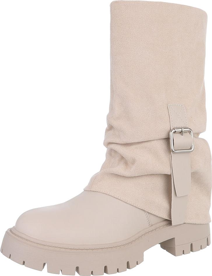 Ital-Design Modische Damenstiefel mit Gurt-Detail für Herbst/Winter Plateaustiefel (90153099) Blockabsatz Stiefel in Beige (beige/braun)