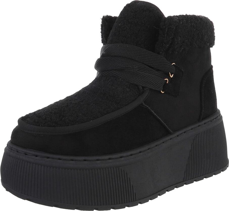 Ital-Design Modische Plateau-Stiefel mit Schnürung für Damen Snowboots (90458060) Keilabsatz/Wedge Stiefeletten in Schwarz (schwarz)