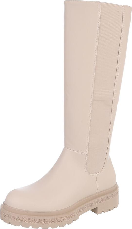 Ital-Design Modische Stiefel für Damen mit geradem Schaft und Komfort Plateaustiefel (90417964) Blockabsatz Stiefel in Beige (beige/braun)