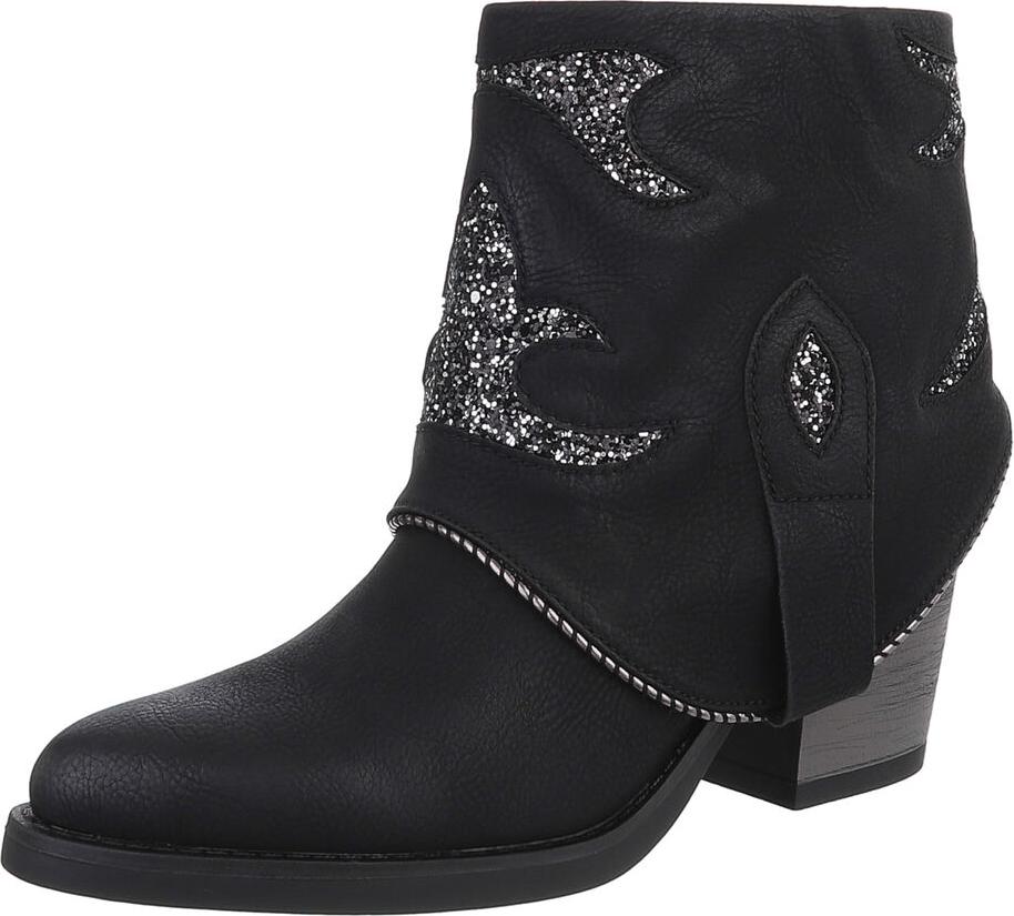 Ital-Design Modische Stiefelette mit Glitzer-Details für Damen Westernstiefelette (90482704) Blockabsatz Stiefeletten in Schwarz (schwarz)