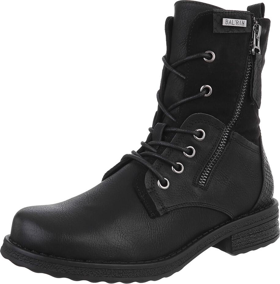 Ital-Design Modischer Damenstiefel mit Schnürung und Reißverschluss Stiefelette (90169760) Blockabsatz Schnürstiefeletten in Schwarz (schwarz)