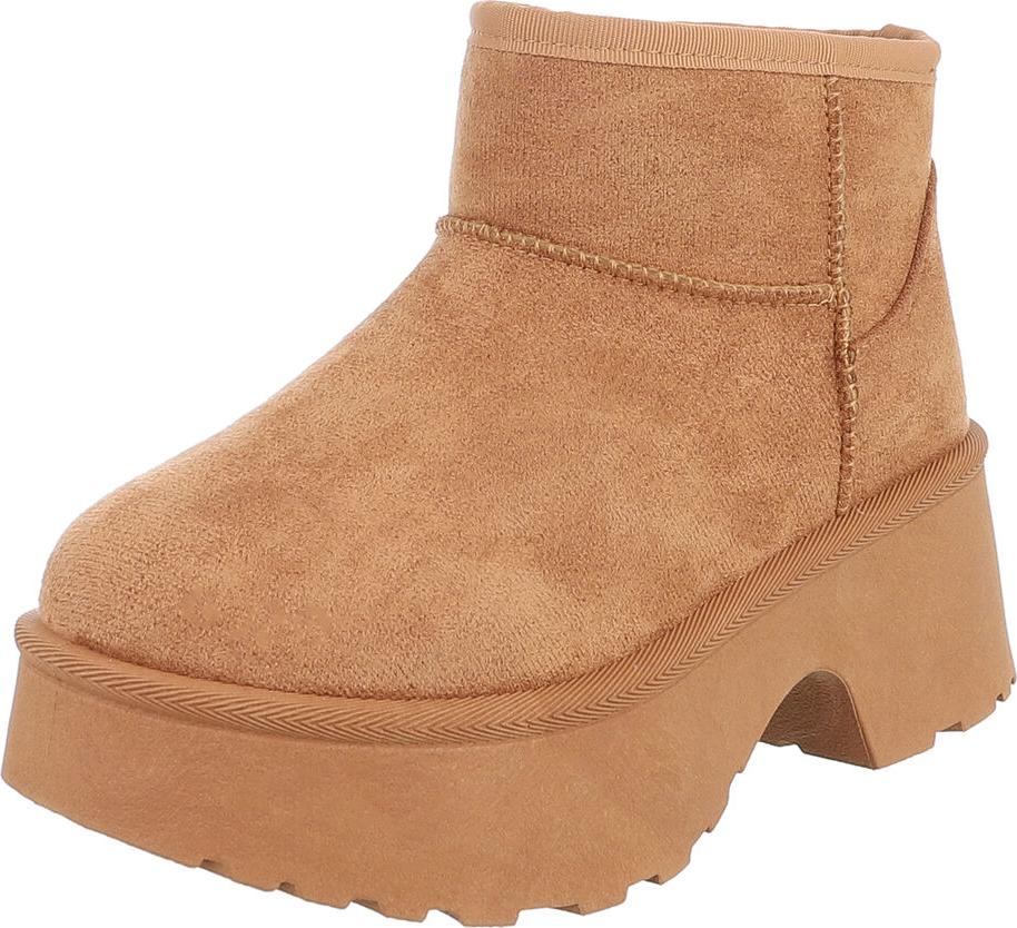 Ital-Design Plattform Ankle Boots für Damen – Stilvoll & Bequem Snowboots (90503040) Blockabsatz Stiefeletten in Camel (braun)