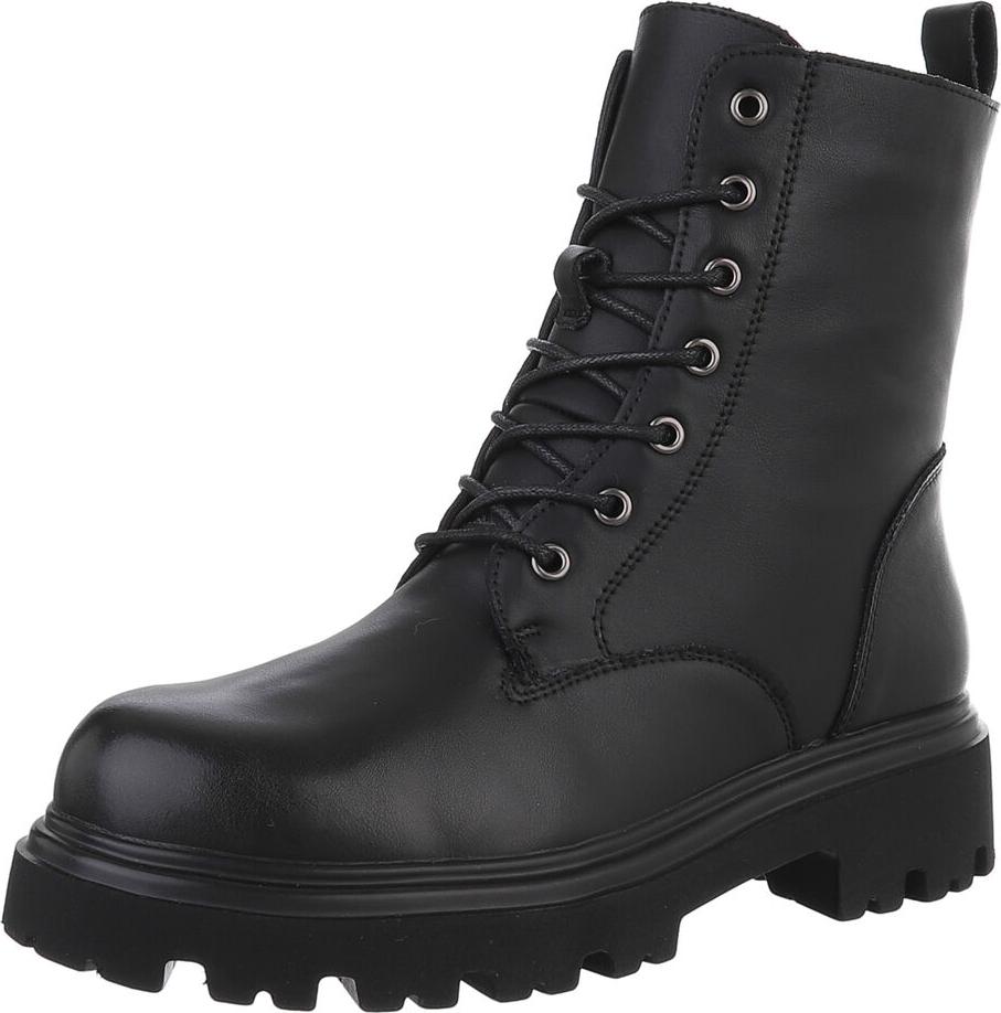 Ital-Design Robuste Lederstiefel für Damen mit Schnürung und Gummisohle Stiefelette (90169348) Blockabsatz Plateaustiefeletten in Schwarz (schwarz)