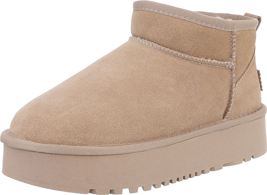 Ital-Design Stilvolle Damen-Lederschuhe für Freizeit und Alltag Snowboots (88519335) Flach Stiefeletten in Hellbraun (braun)