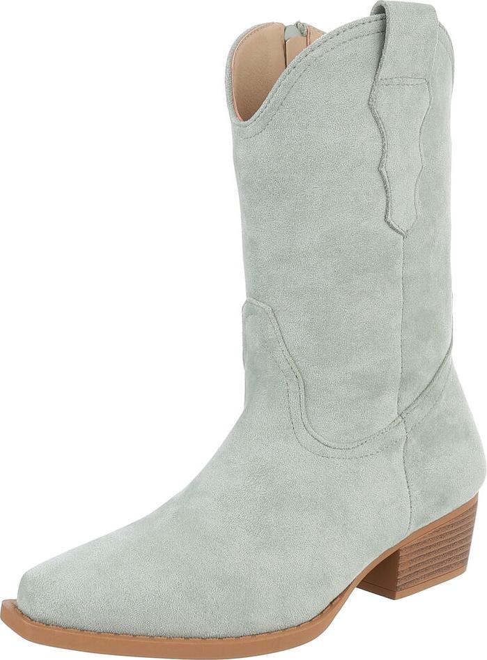 Ital-Design Stilvoller Cowboystiefel mit praktischem Reißverschluss Westernstiefelette (90482479) Blockabsatz Stiefeletten in Hellgrün (grün)