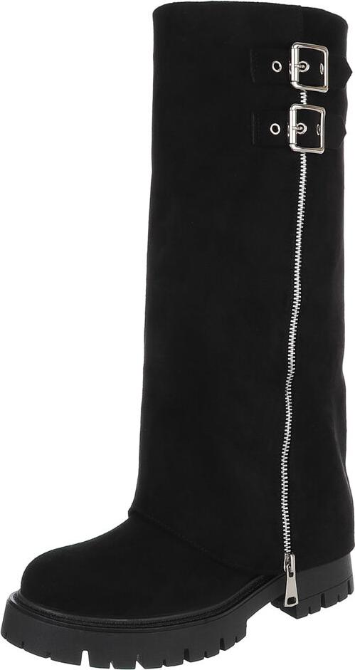 Ital-Design Stylische schwarze Stiefel mit Schnallen und Reißverschluss Plateaustiefel (90153110) Blockabsatz Stiefel in Schwarz (schwarz)