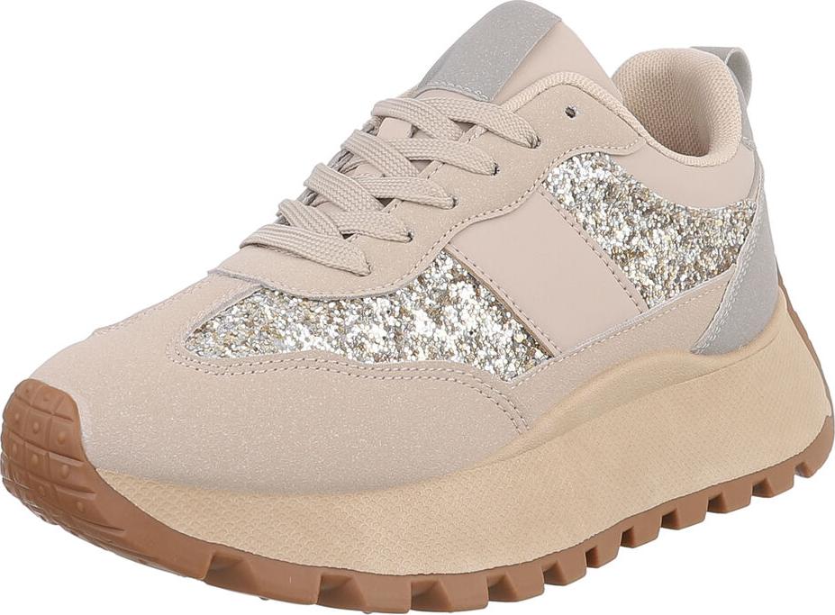 Ital-Design Stylische Sneakers mit Glitzerdetails für Damen Sneaker (90169710) Keilabsatz/Wedge Sneakers Low in Beige (beige/braun)