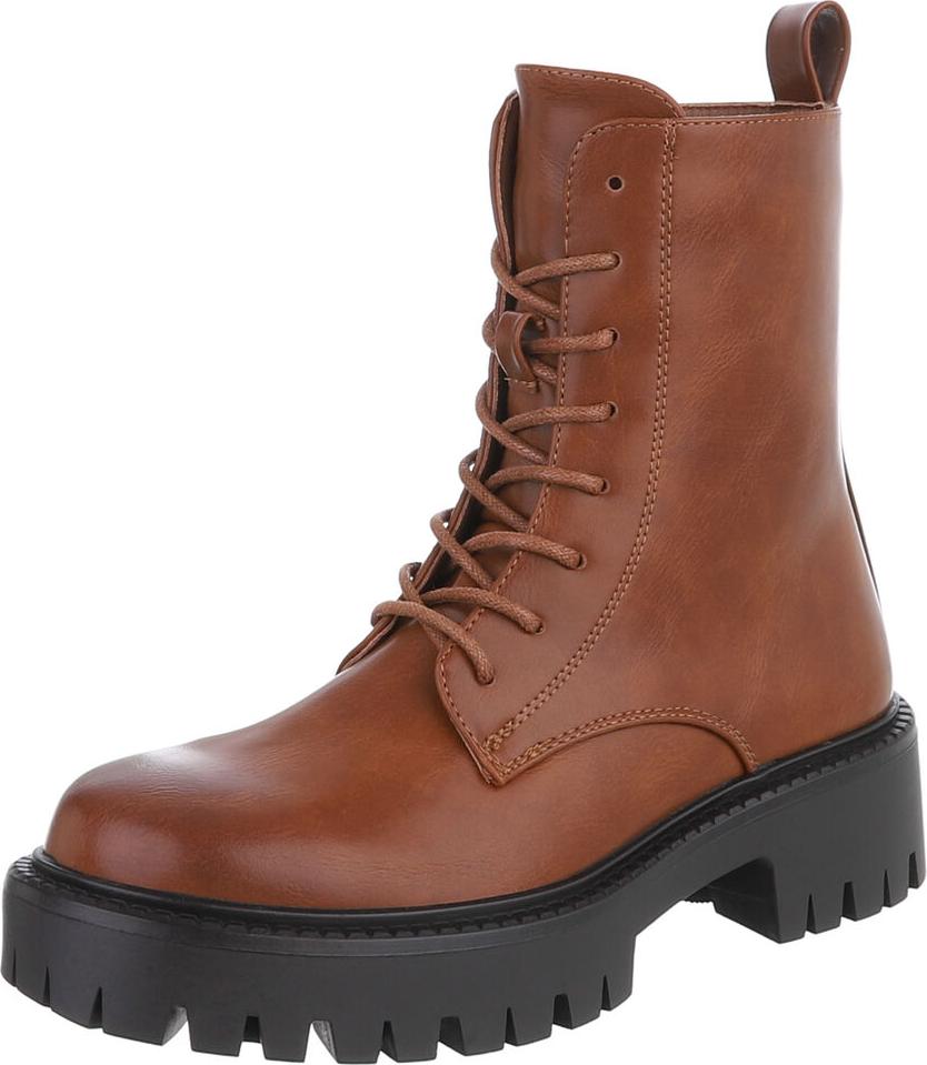 Ital-Design Stylischer Damenstiefel mit robuster Sohle für Wintertage Plateaustiefelette (90169437) Blockabsatz Stiefeletten in Camel (braun)