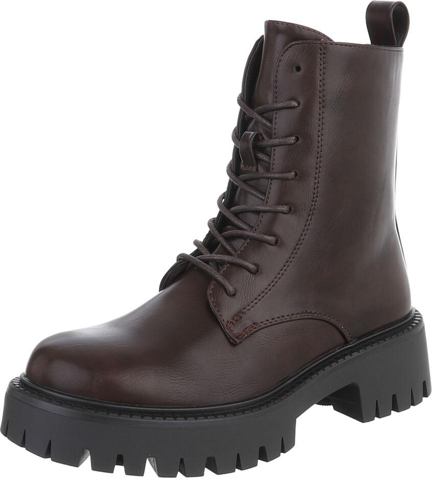 Ital-Design Stylischer Damenstiefel mit robuster Sohle für Wintertage Plateaustiefelette (90169443) Blockabsatz Stiefeletten in Braun (braun)