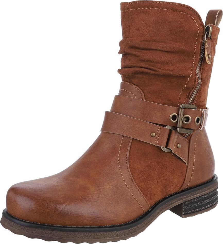 Ital-Design Stylischer Stretch-Stiefel mit Schnalle und Reißverschluss Stiefelette (90109992) Blockabsatz Western- & Bikerboots in Camel (braun)