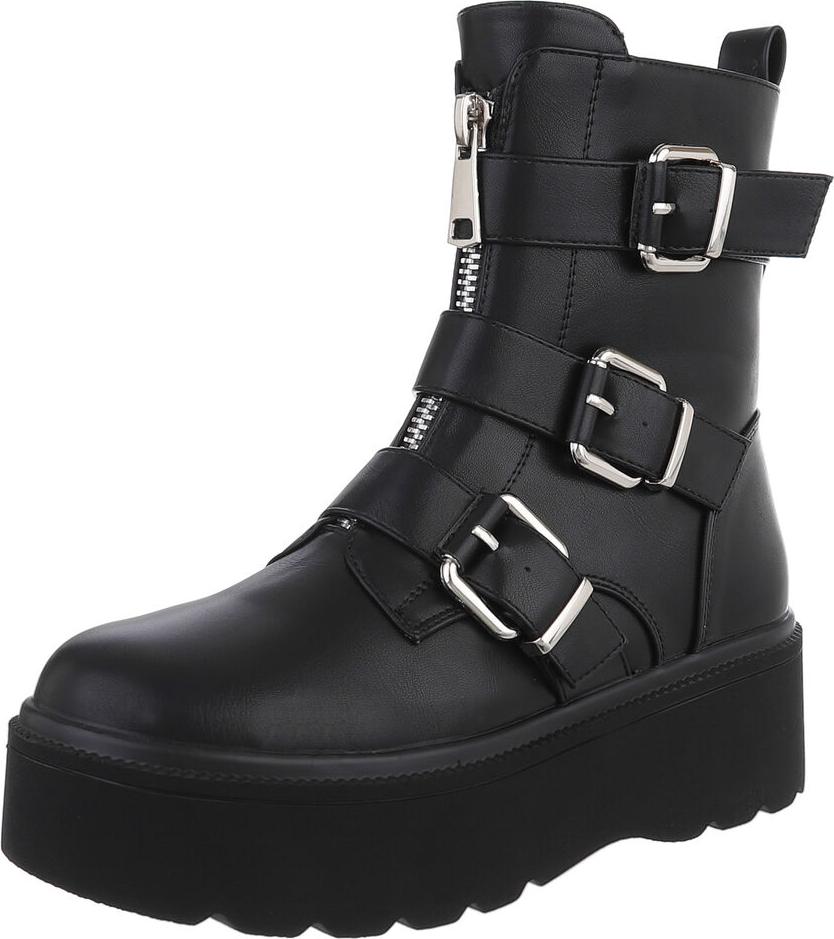 Ital-Design Trendige Boots mit Plateau und Schnallen für Damen Plateaustiefelette (90514863) Flach Stiefeletten in Schwarz (schwarz)