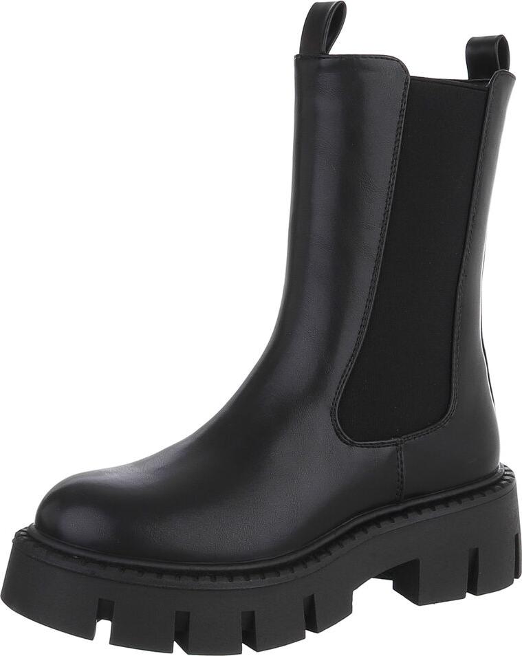 Ital-Design Trendige Chelsea Boots mit markanter Sohle für Damen Plateaustiefelette (90152887) Blockabsatz Stiefeletten in Schwarz (schwarz)