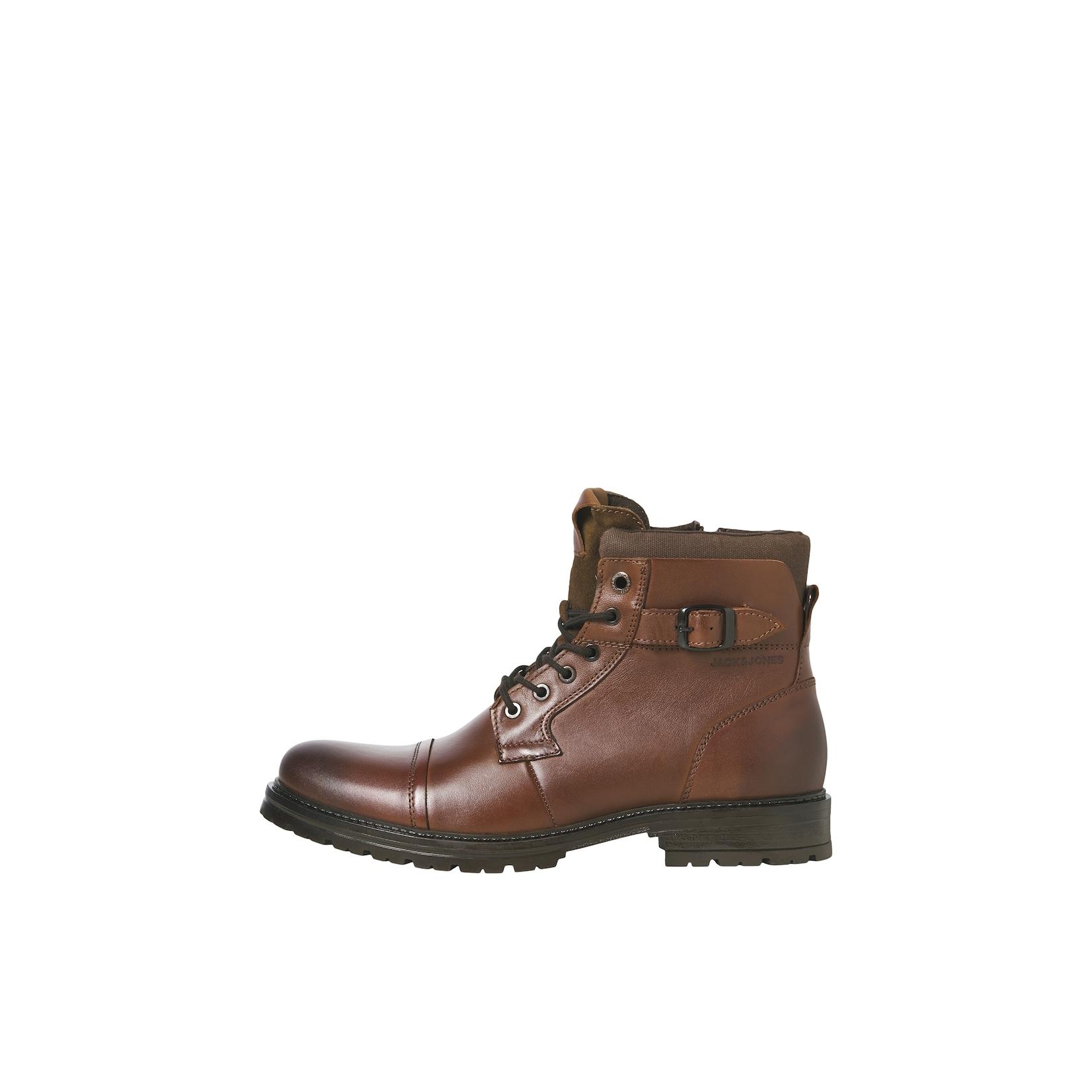 jack & jones Herren Schuhe Leder-Stiefel - JfwDexter Biker-Boots Schnürstiefelette (braun)