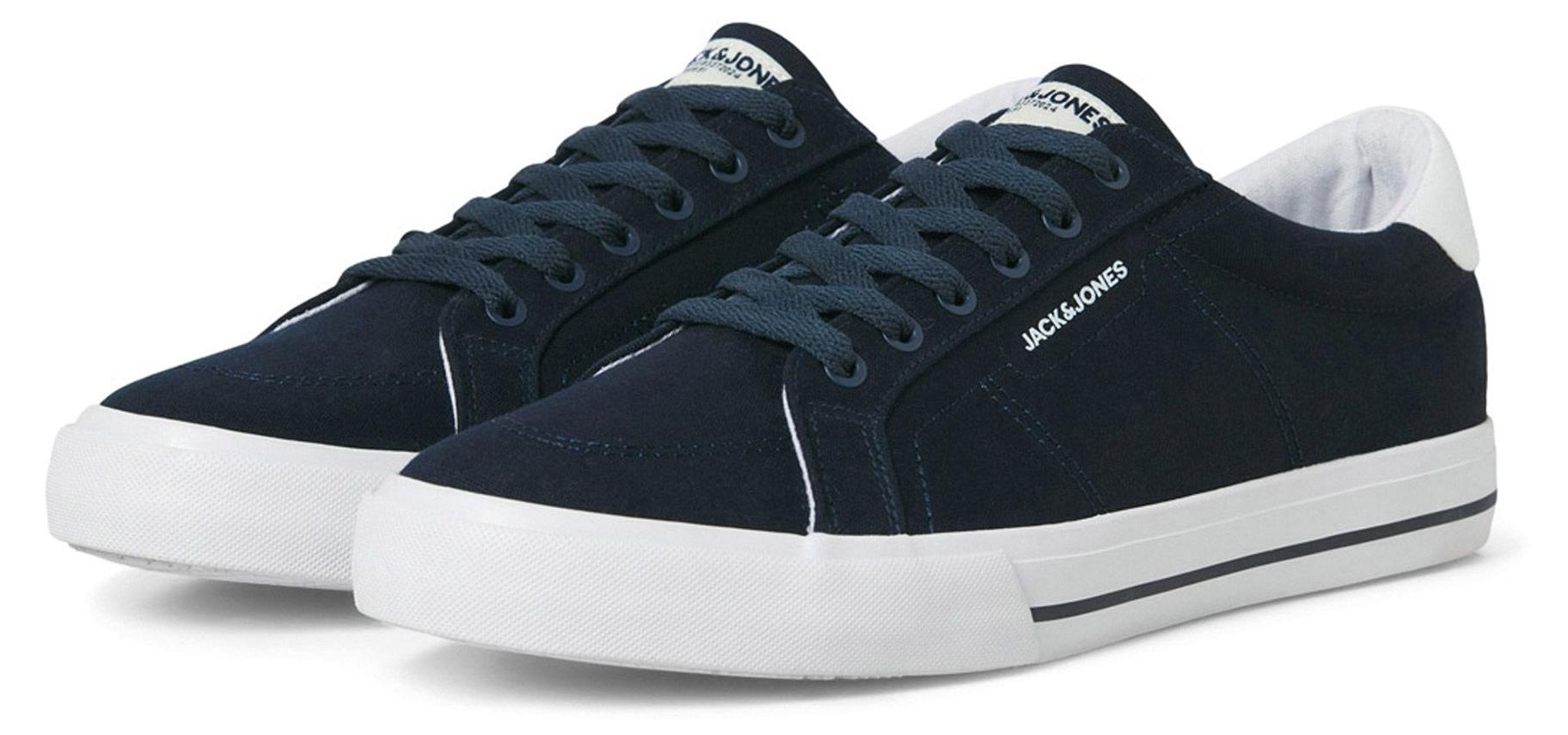 bequeme Sneaker für Herren von JACK &, JONESObermaterial aus robustem, langlebigem Baumwoll-CanvasSchnürung ermöglicht individuelle Anpassung und sicheren Sitzgepolsterte Komfort-Innensohle und flache, leicht profilierte Außensohle für ein komfortables Laufgefühldezente Markendetails verleihen dem Sneaker einen modernen, urbanen Lookvielseitig kombinierbar zu Jeans, Chinos oder Shorts - ideal für Freizeit und Alltag