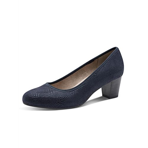 Bequem auf Schritt und Tritt: Der Pumps aus textilem Obermaterial mit glänzender Prägung begeistert durch die weiche Polsterung inklusive trittdämpfendem Antishock-System. +