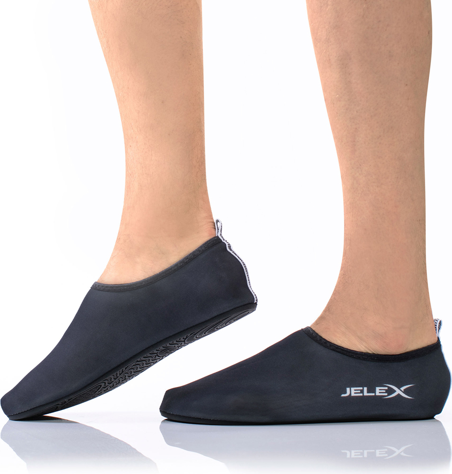 Marke: JELEXMaterial: SynthetikSohle: GummiMarkenlogo auf der Außenseiteoptimal für alle Aktivitäten im Wasser und rundherumideal für Aktivitäten an Land auf rutschigem, oder glatten Untergrundgeeignet für alle, die gerne Barfußlaufen ohne Verletzungsgefahrenganliegend – dünnes, elastisches Material passt sich optimal an und bleibt dabei formstabilSchlupfeinstieg ohne Verschlusssockenähnliche Konstruktion aus einem Stückohne Nähte, optimaler Komfort ohne Reibung oder Druckstellenrutschfeste Außensohle, vermeidet Unfälle auf nassem und rutschigem Untergrund dünne, sehr flexible Sohle, für hervorragenden BodenkontaktEinstieg mit weichem, elastischem Bund, passt sich dem Fuß an ohne einzuschnürenschnell trocknend und formstabil, trocknen beim Tragen, ohne ausziehenmit einer praktischen Lasche hinten zum schnellen An- und Ausziehenherausnehmbare Innensohle, kann bei Bedarf ausgetauscht werden angenehmer TragekomfortNEU, mit Etikett &, OVP