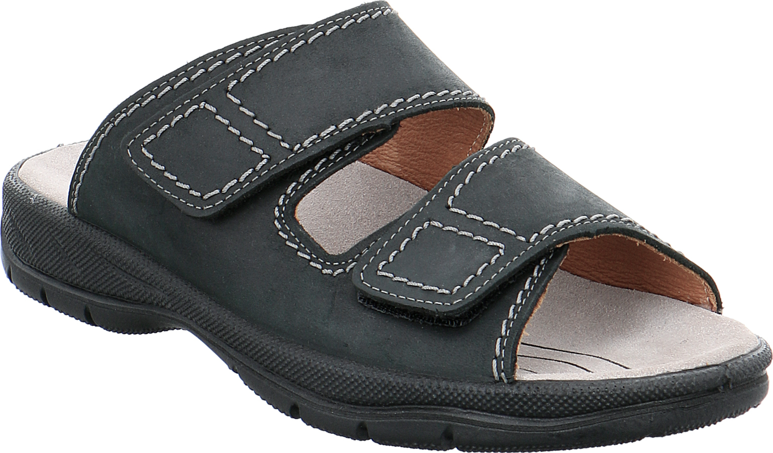 Jomos Komfort-Pantoletten - Modell: Activa- Farbe: schwarz- Schuhweite: H - Bequemweite für etwas kräftigere Füße- Obermaterial: Nubukleder- Futter: Leder- Laufsohle: Aircomfortsohle- Veloursleder-Fußbett- Verschluss: Klettverschluss- atmungsaktiv- Made in Germany