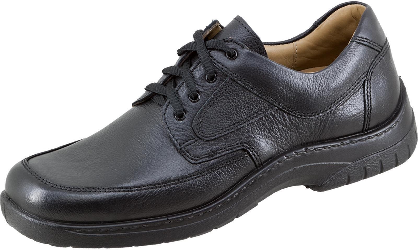 Das Obermaterial aus Leder und die Schnürung gewährleisten eine sichere und bequeme Passform. Eine leichte, auftrittsdämpfende Aircomfortsohle und eine BlueCom Soft-Fußbetteinlage sorgen für lang anhaltenden Komfort.Eigenschaften:- Kugelferse - BlueCom Soft-Fußbetteinlage- leichte und auftrittsdämpfende Aircomfortsohle aus Polyurethan Material: LederFarbe: schwarz Weite: H Größen: 38-49