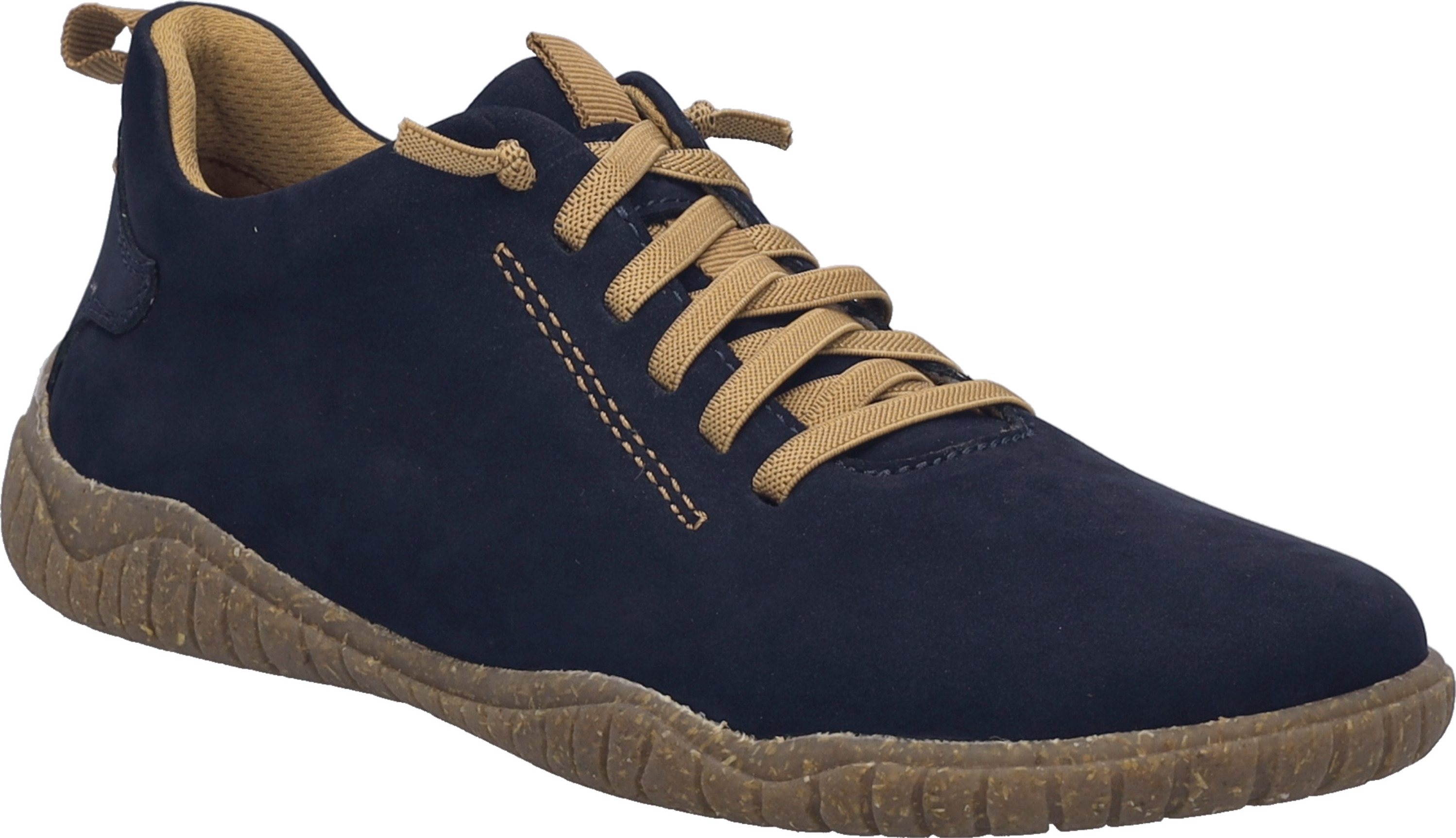 Das blaue Rauleder aus Echtleder punktet mit angenehmer Haptik, die runde Spitze verleiht eine unkomplizierte Optik. Die bequeme Elastikschnürung, die Anziehlasche sowie der gepolsterte Einstieg erleichtern das Anziehen, während die verstärkte Ferse sicheren Halt gibt.