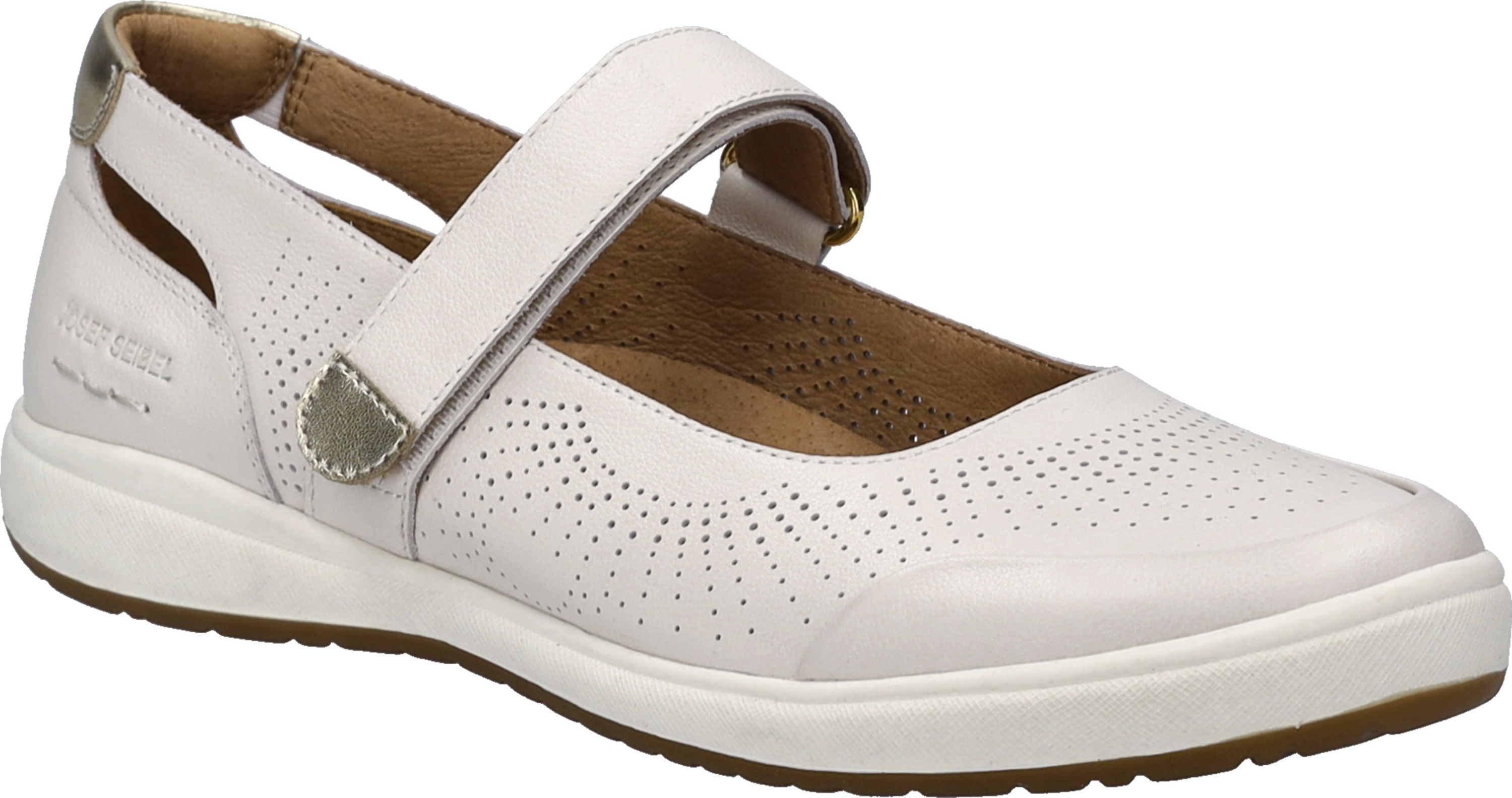 Der JOSEF SEIBEL Caren 68 Halbschuh in elegantem Weiß-Gold vereint zeitlose Eleganz mit modernem Komfort. +