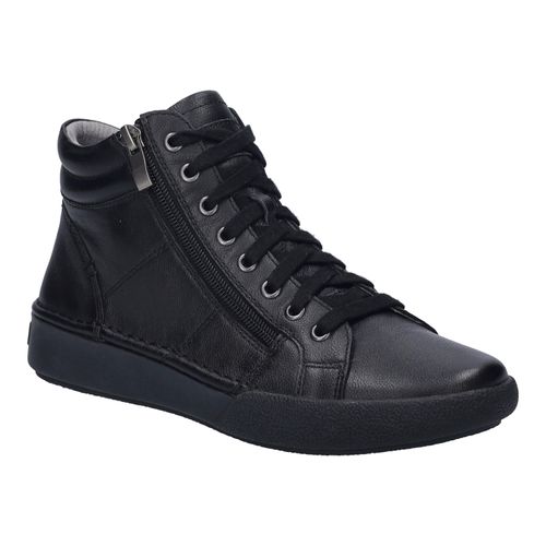 Entdecke die Josef Seibel Claire 11 Sneaker Schnürboots in elegantem Schwarz – dein neuer Lieblingsbegleiter für jeden Anlass. Diese stilvollen High-Top-Sneaker reichen bis über den Knöchel und setzen nicht nur modische Akzente, sondern bieten auch hervorragenden Halt und Komfort. Das hochwertige, flexible Leder-Obermaterial ist isolierend, wasserabweisend und langlebig, sodass du dich auf Qualität verlassen kannst. +
