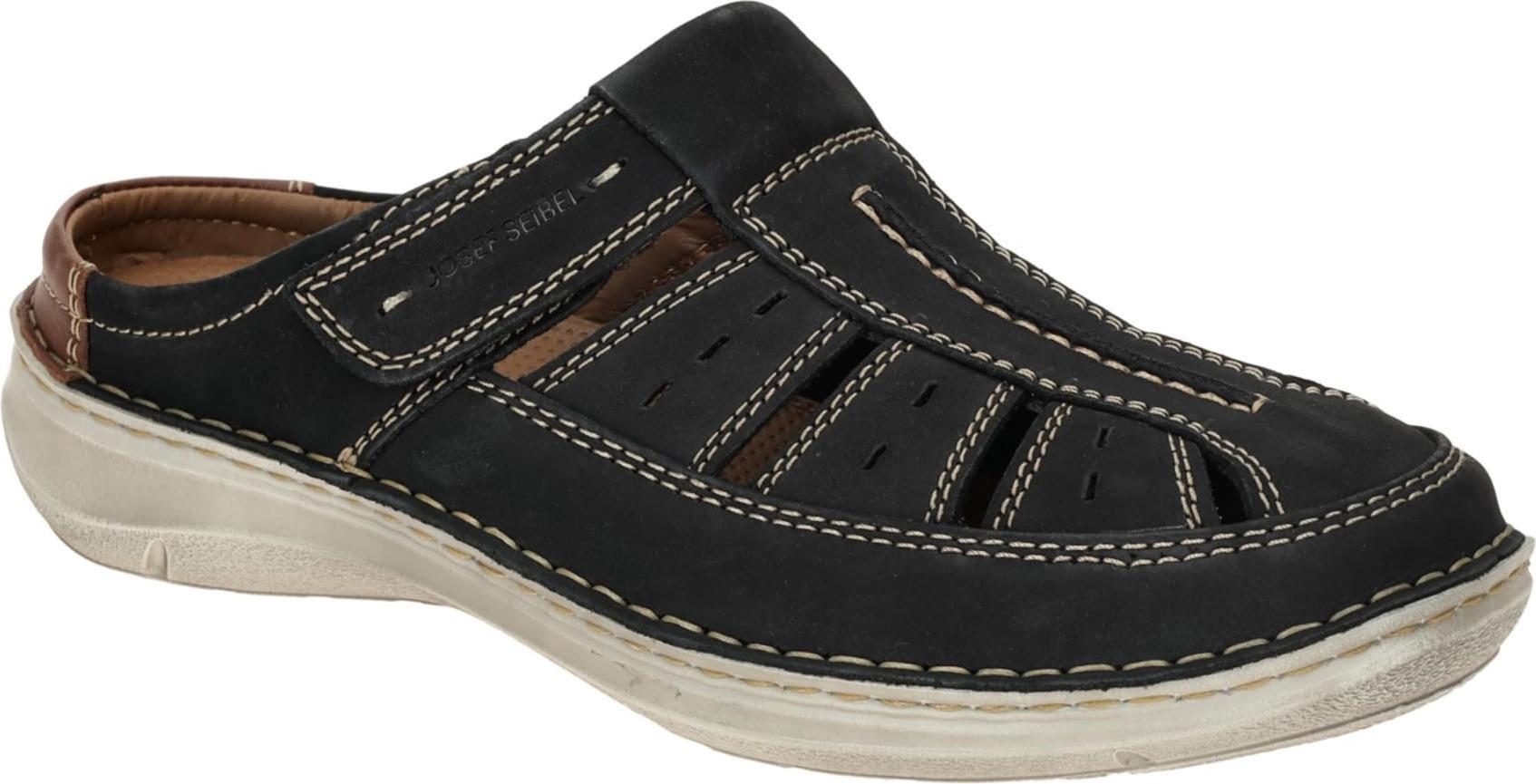 Marke: Josef SeibelModell-Nr.: 44976 518 505Modellname: NEW ANVERS 76Art: Herren Pantolette - bequeme Pantoletten, ClogsFarbe: blau +, braun +, Nähte in beige +, Sohle in grau (dunkelblau)Obermaterial: Echtleder - Nubuck (Kerala Nubuk / Kombi)Innenfutter: Echtleder und TextilInnensohle: Echtleder - FußbettWechselfußbett: herausnehmbare InnensohleLaufsohle: Polyurethan (PU) - extra leicht und flexibelVerschluss: KlettverschlussAbsatz: flach - kein AbsatzSchuhform: rundGrößenangabe: fällt normal ausWeitenangabe: K-Weiteinterne Artikelnummer für Ihre Rückfragen: 177-81-0003