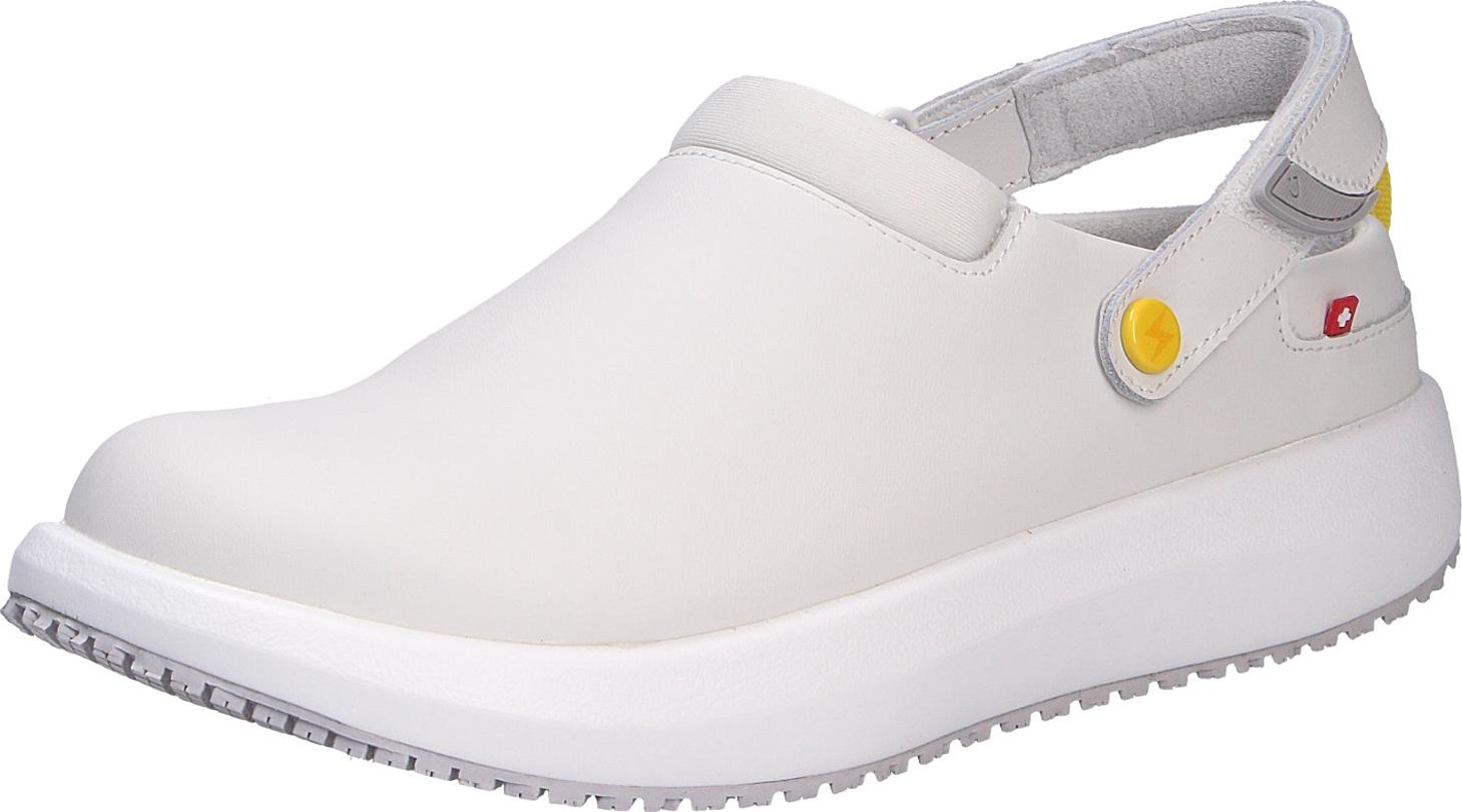 Joya Damenclog ACE White mit der Senso-Sohle JY026A:Der Joya Damenclog Ace ESD W White aus weichem Glattleder mit atmungsaktiver Innensohle bietet maximale Bewegungsfreiheit. +