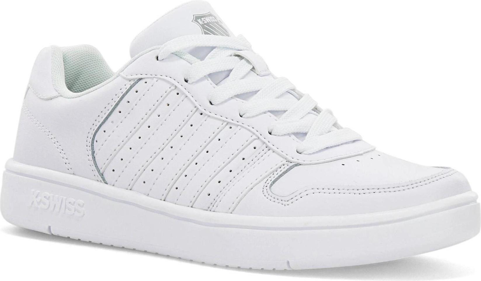Der K-Swiss Court Palisades Damen Sneaker mit verstärkter Ferse in Weiß ist der perfekte Begleiter für jeden Tag. Das Obermaterial aus strapazierfähigem Leder sorgt nicht nur für einen hochwertigen Look, sondern bietet auch höchsten Tragekomfort. Jeder Schritt wird zu einem Erlebnis, denn das weiche und anschmiegsame Textilfutter mit gepolstertem Schaft verwöhnt Ihre Füße. +