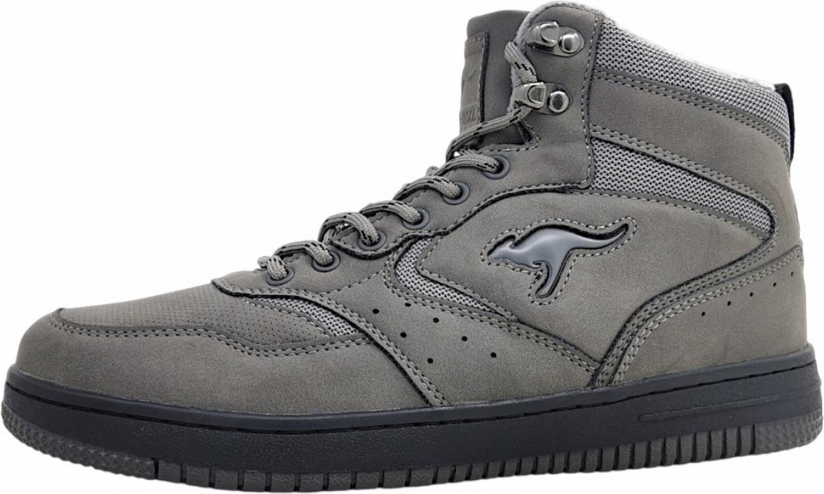 Sportlich und modern ist der K-Watch Bliz Hightop Sneaker für Herren von Kangaroos.Das Obermaterial wurde in einem Mix aus Kunstleder und Textil Mesh in Grau gefertigt.Die Overlay Struktur und kleine Lasercuts, sowie das Känguru an der Seite geben dem Schuh seinen sportlichen Look.Der Schaft ist angenehm gepolstert und dank der Bergsteiger Schnürung kann der Schuh perfekt an den Fuß angepasst werden.Das Innenfutter ist flauschig, wodurch kühle Herbsttage kein Problem sind. +