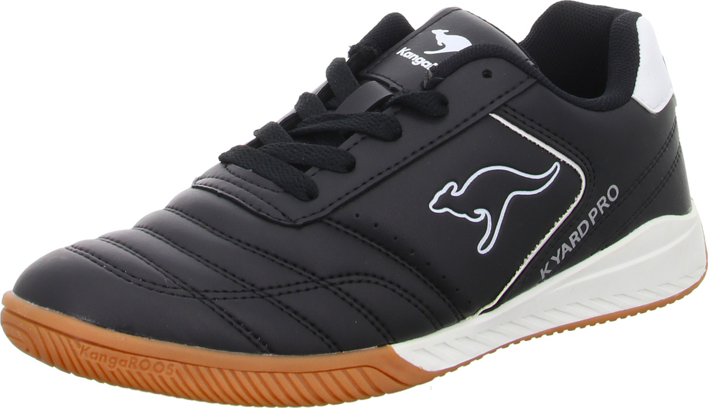 Der K-Yard Pro 5 von Kangaroos in Schwarz mit Akzenten in Weiß ist ein schöner Hallenschuh für Herren.Mit seinem Obermaterial aus Kunstleder ist der Schuh nicht nur ein echter Hingucker, sondern auch besonders flexibel und robust. +