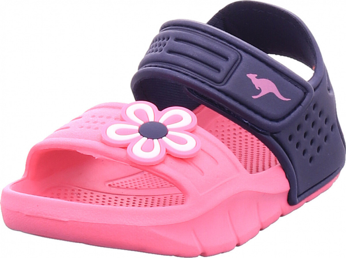 Gefertigt aus Synthetik in Pink und Dunkelblau begeistert der Schuh mit einer aufgesetzten Blüte auf dem Riemen.Die Sandale eignet sich sowohl als Badeschuh, als auch als Sommersandale zum Toben und Spielen.Der Schuh trocknet schnell und lässt sich durch den Klettverschluss leicht an- und ausziehen.Eine tolle Kindersandale für den Sommer.