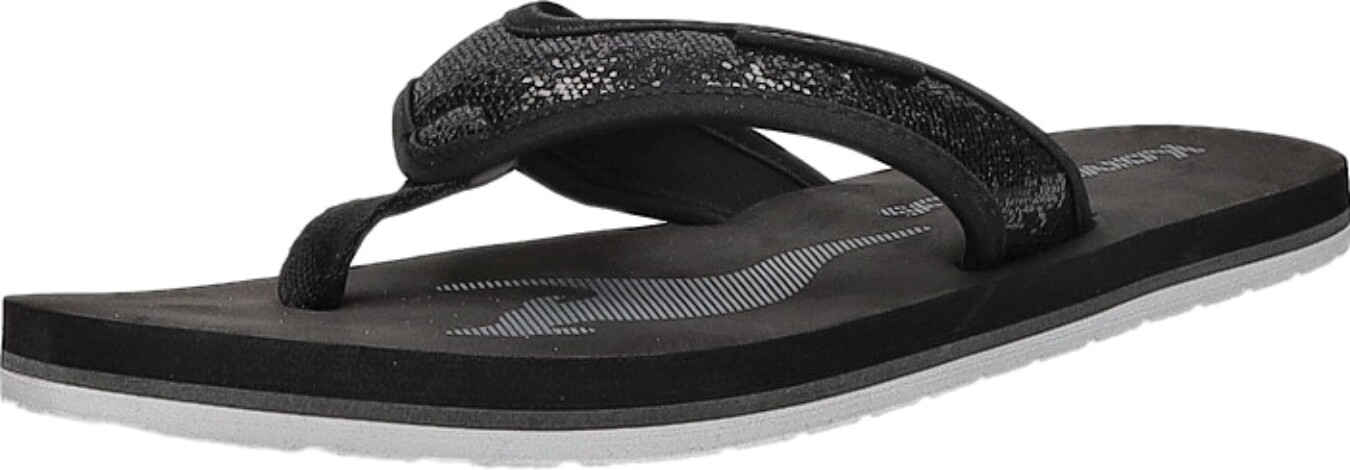 Mit KangaROOS MAYA Zehentrenner Pantolette black/silverliegen Sie immer im TrendSeine raffiniertes Design mit Tarnlook auf der Decksohle ist einfach tollWeich gepolsterte Innensohle für optimalen Sitz. Decksohle: SynthetikVerschluss: Slip OnSohle: Ethylen-VinylacetatArt. +