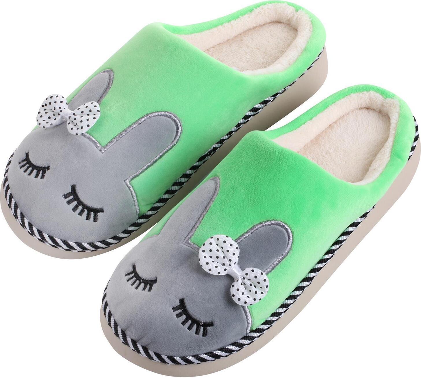 Katara Tier Pantoffeln Gr. 34-41 (Einhorn, Katze, Hase) Plüsch Hausschuhe Hausschuhe, weich, warm, süß, kuschelig, Plüsch Kaninchen (Grün) (grün)