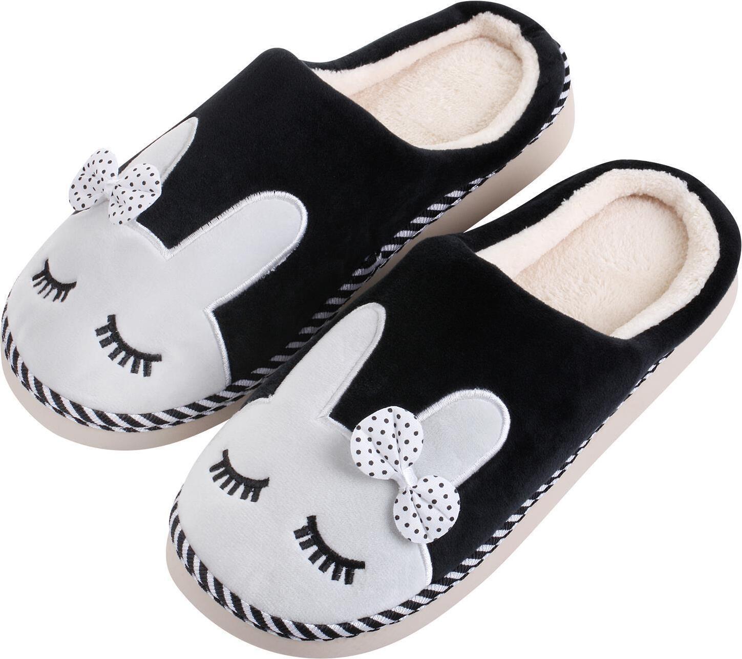 Katara Tier Pantoffeln Gr. 34-41 (Einhorn, Katze, Hase) Plüsch Hausschuhe Hausschuhe, weich, warm, süß, kuschelig, Plüsch Kaninchen (Schwarz) (schwarz)